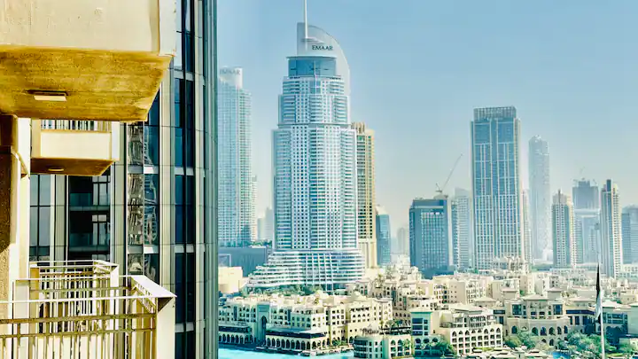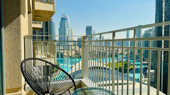 → Spacious balcony overlooking Dubai Fountain and Opera House