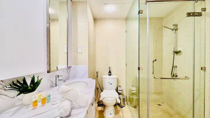 → Walk-in Shower and bath tub for a refreshing experience